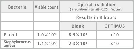 Photocatalysts that normally respond exclusively to the ultraviolet range are doped with a metallic ion so that they also respond to visible light of a range 400 nm or greater; by which, the photocatalysts of OPTIMUS respond to the visible light region. That means, any time an interior lamp is turned on, OPTIMUS coated on the wall removes undesirable substances that are stuck on the wall